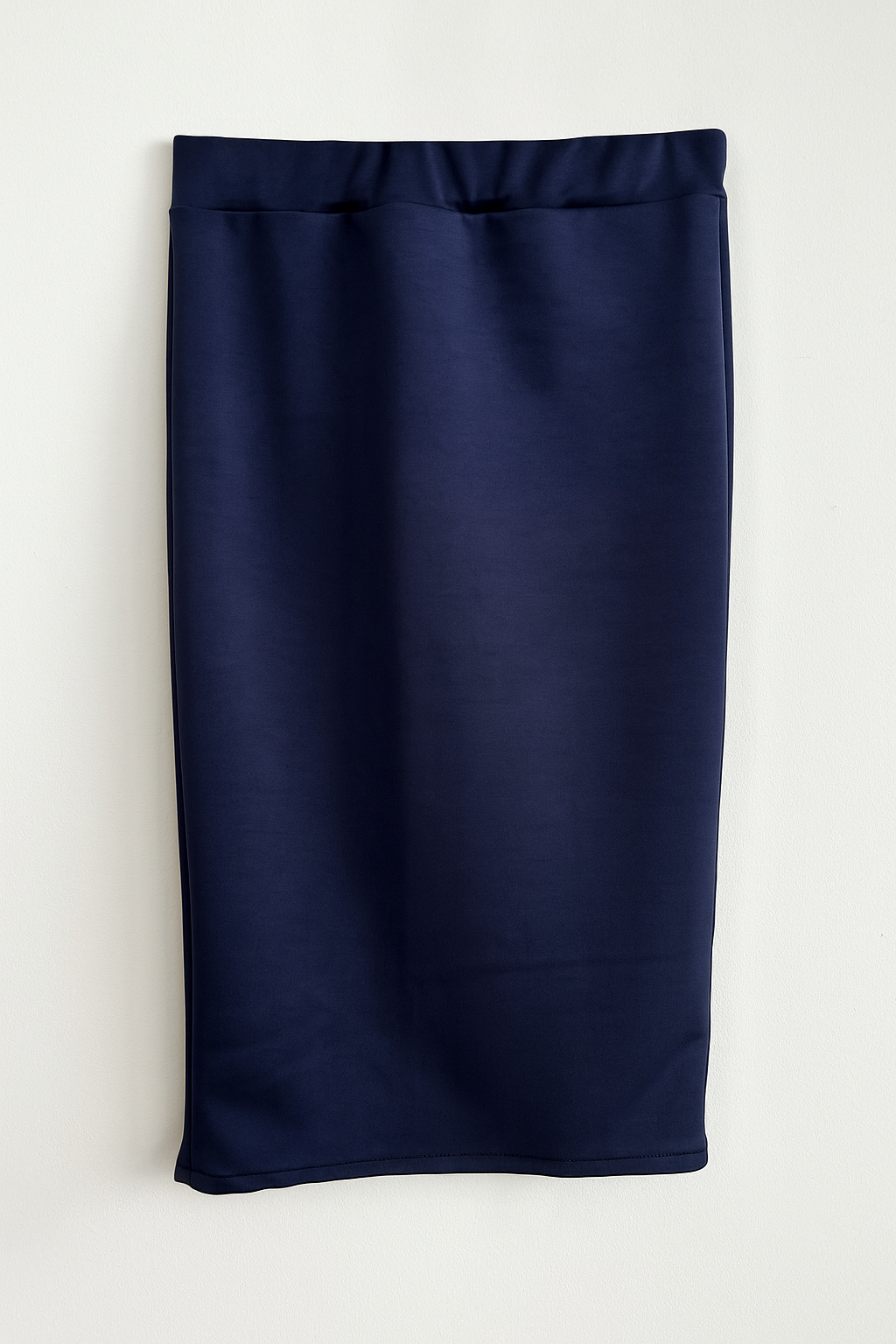 Falda mujer tubo midi ajustada en color azul marino, de talle alto y cintura con elástico.
